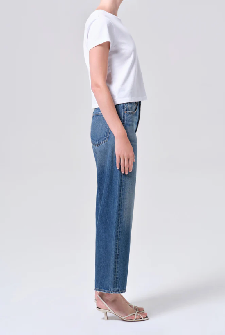 A high-rise wide-leg silhouette, the Ren Jean is designed with a flattering high waist, a relaxed fit through the hips, and a long, easy leg shape that feels both timeless and modern. Finished in a dark washed worn-in indigo, it brings subtle depth and a naturally lived-in look to this structured classic. Crafted from rigid non stretch regenerative cotton denim with a soft hand feel, it delivers all day wearability while maintaining its clean, sculpted form.
