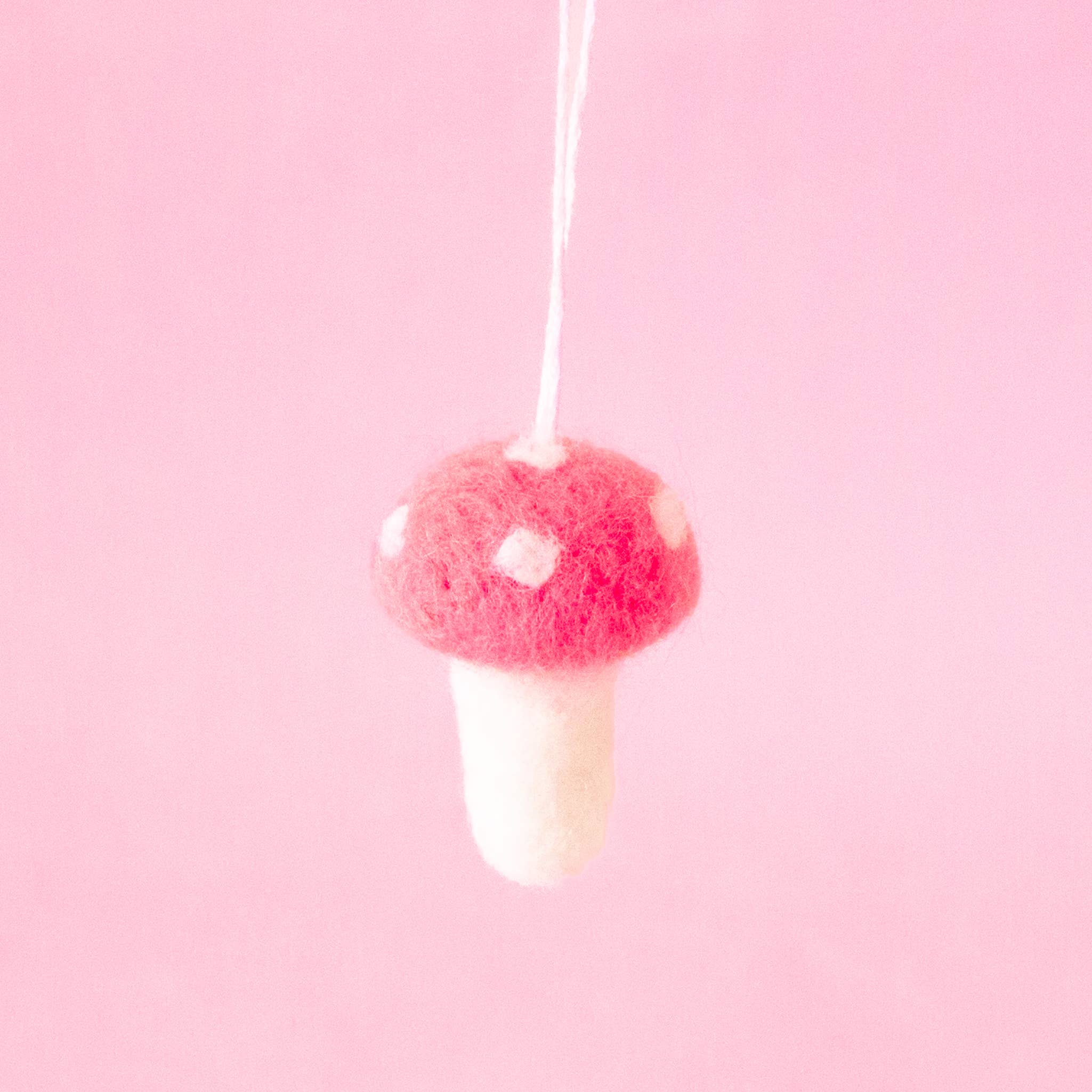 Bring a whimsical woodland touch to your holiday decor with these fun and festive Felt Mushroom Ornaments! This colorful dark pink mushroom makes for a unique addition to any tree. Crafty and kitschy - the perfect mushroom mix for the holidays! Each ornament sold separately. . Dimensions | 2.25" x 1.5" . Material | Wool Felt . Imported