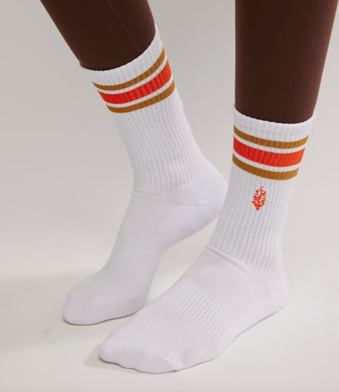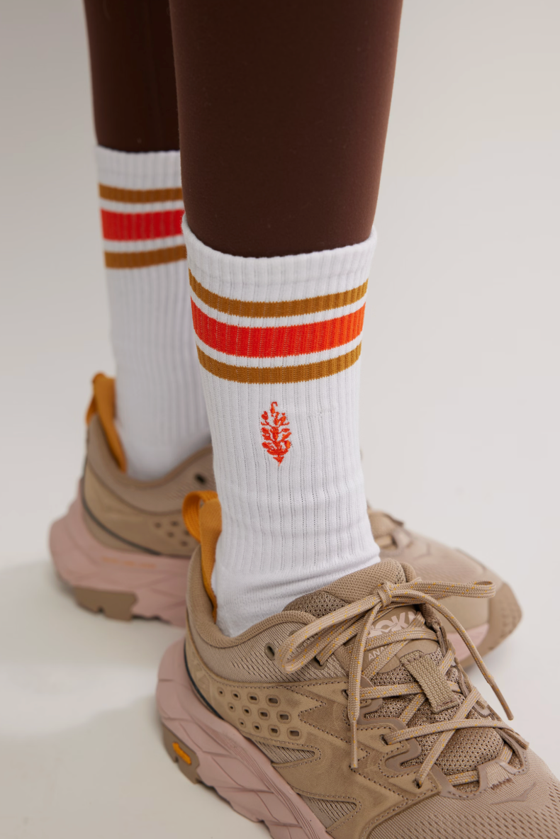 Classic retro style tube socks featured in a sporty ribbed design with triple stripes at the ankle.