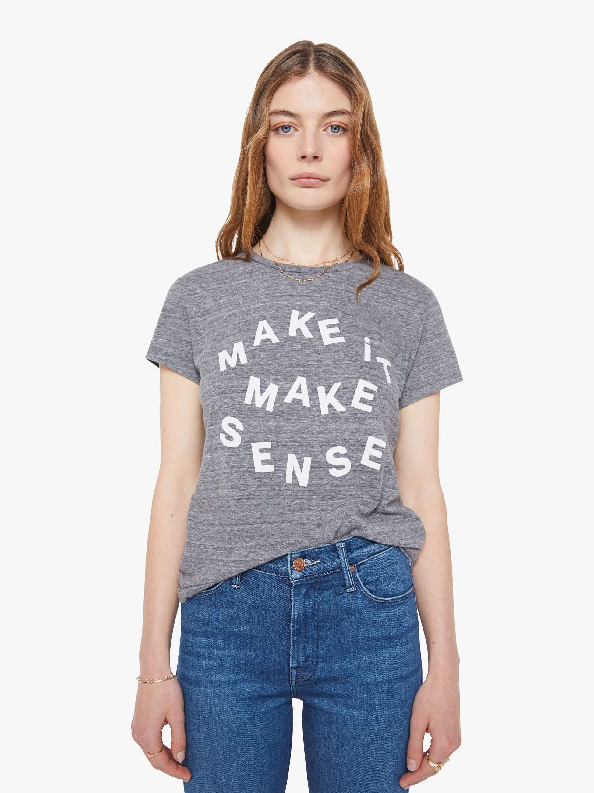 Make it make sense. A soft crewneck with a slim fit for a vintage look and feel. Made from a soft cotton blend in heathered grey, the tee features white block text on the front.
