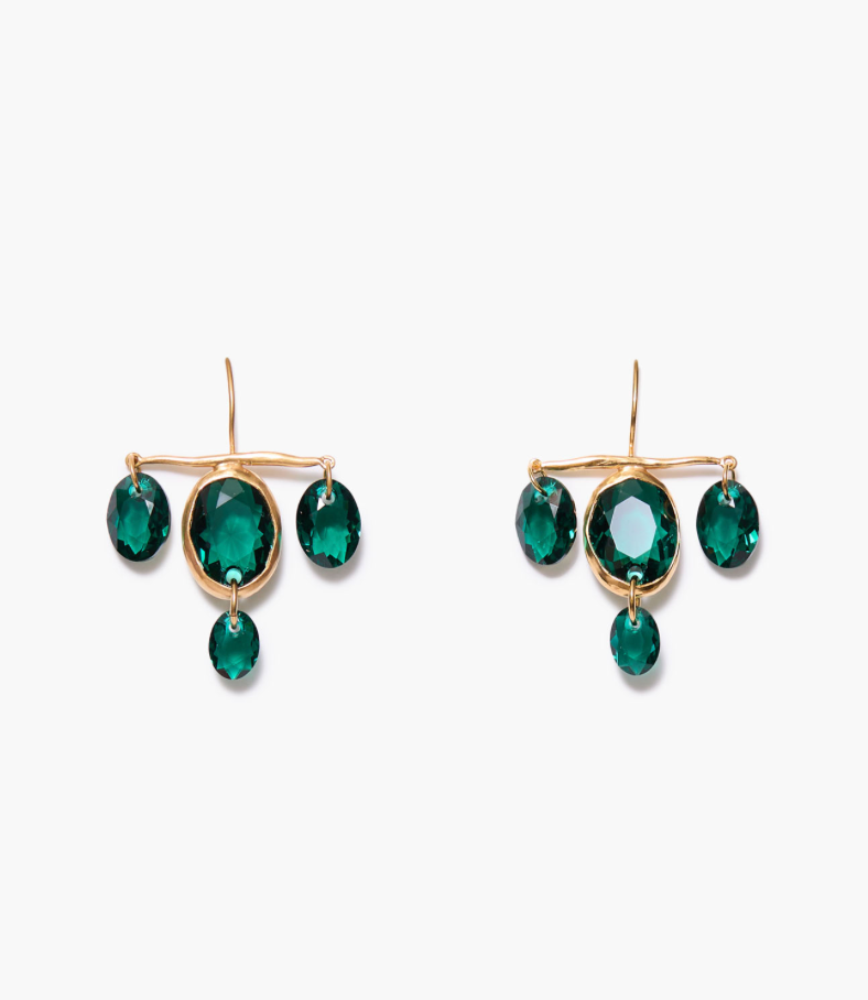 18k gold plated sterling silver chandelier earrings featuring Swarovski crystals on French hooks. 1 1/2in. drop.