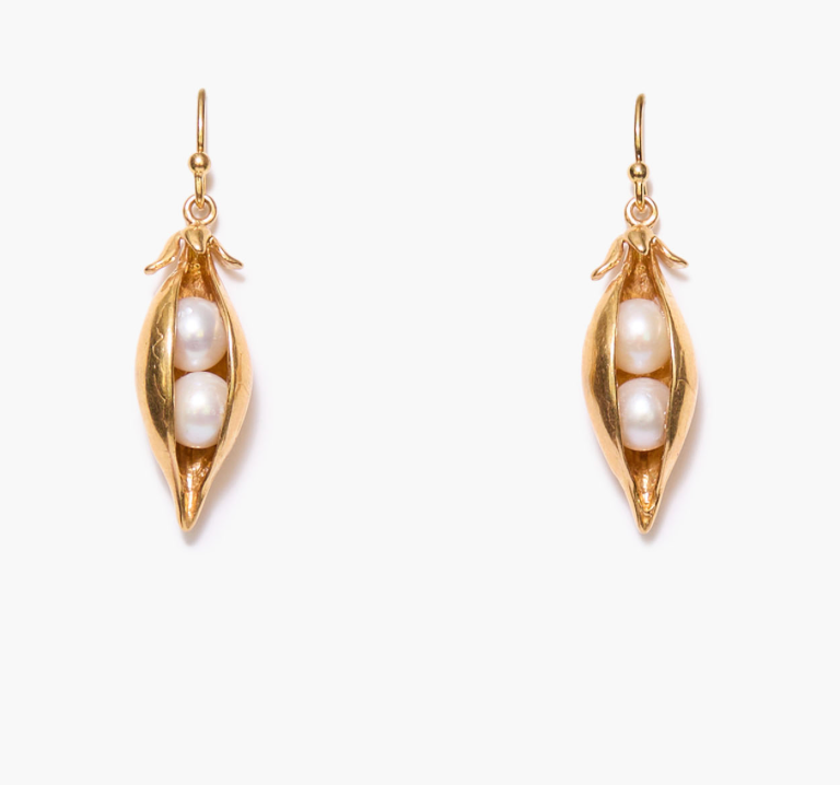 Gold plated brass earrings featuring freshwater pearl peapods of French hooks. 1 1/2in. drop.