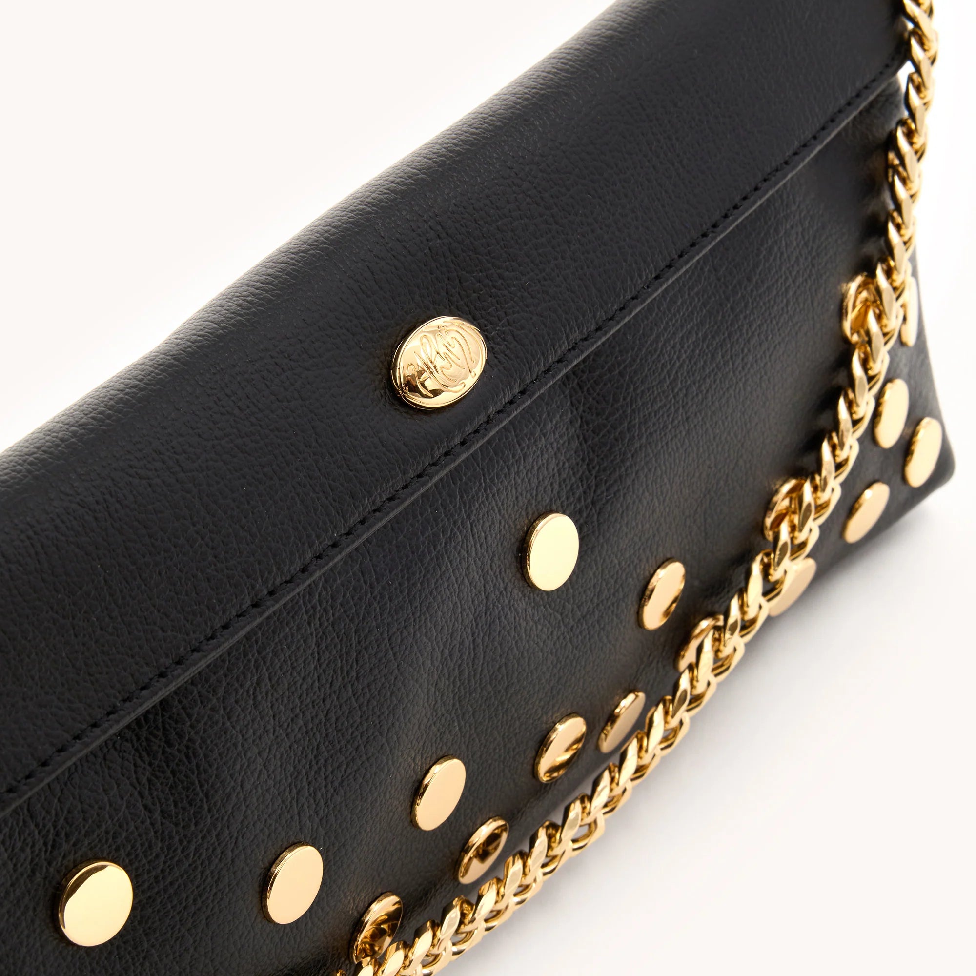 Meet the Invitation Clutch – your perfect plus-one for any event. This is the first Hammitt bag designed exclusively as a clutch, making it a must-have accessory for high-end occasions. This clutch is ideal for cocktail hours and evening events, as it features our signature metal chain strap, allowing you to wear it elegantly over your hand or draped across your forearm. This silhouette also marks the debut of our new Hammitt Droplet hardware piece, a modern update to our iconic brand logo through the lens of a single water droplet.