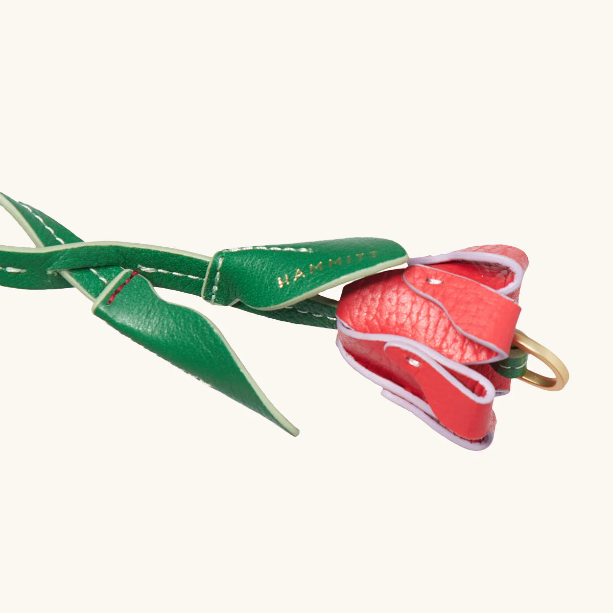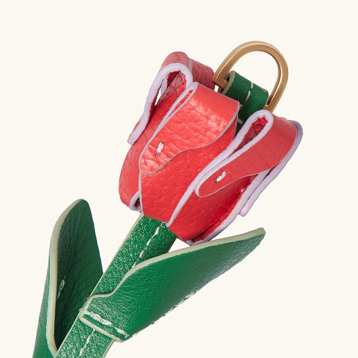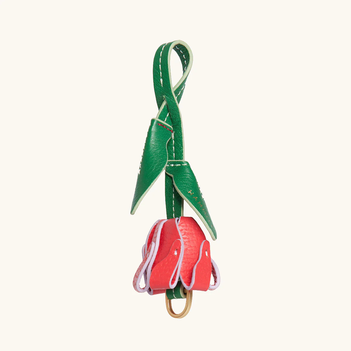 Say hello to Ross's Rose Garden Charm, our new little leather delight. Here just in time for summer, featuring a whimsical flower charm. Our best selling keychains looks great on their own - or alongside any piece from our best selling or to summer collections. Collector's edition charm / keychain  Crafted with two leathers in red and green hues Brushed gold branded D ring