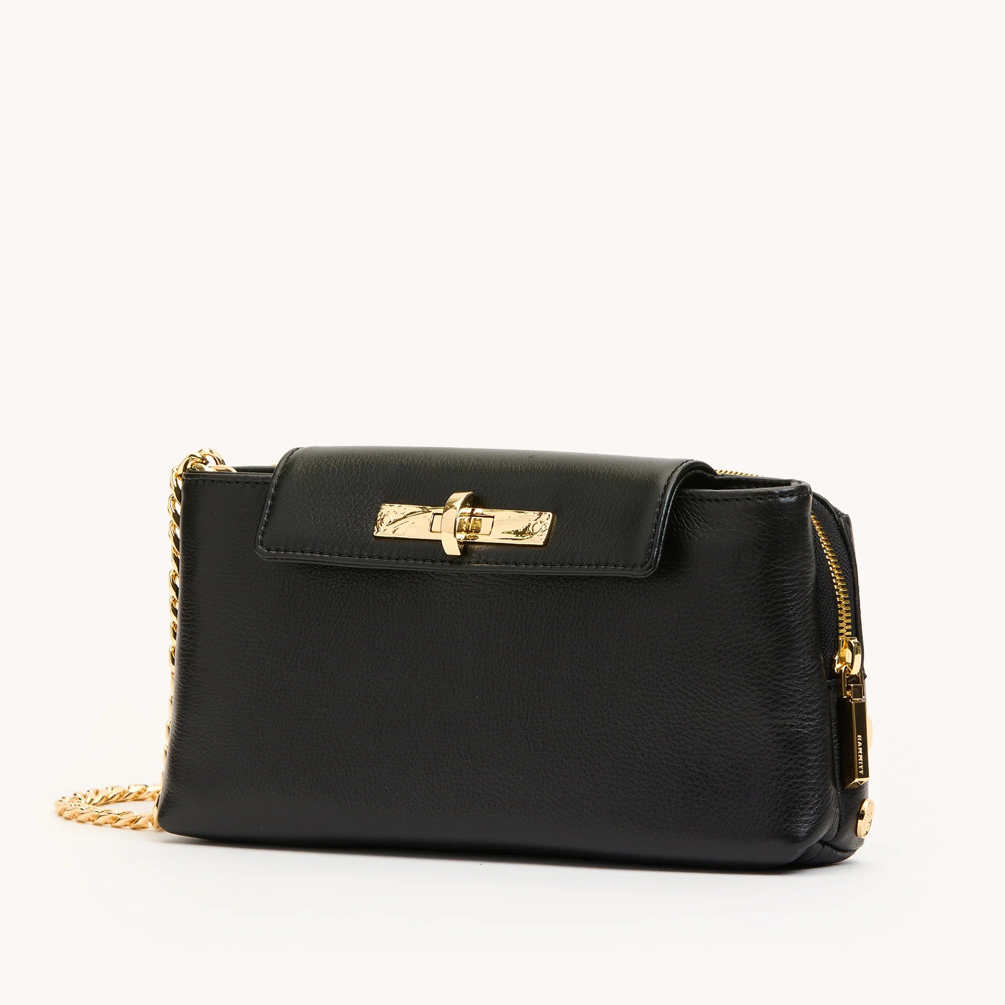 - Shiny gold hardware