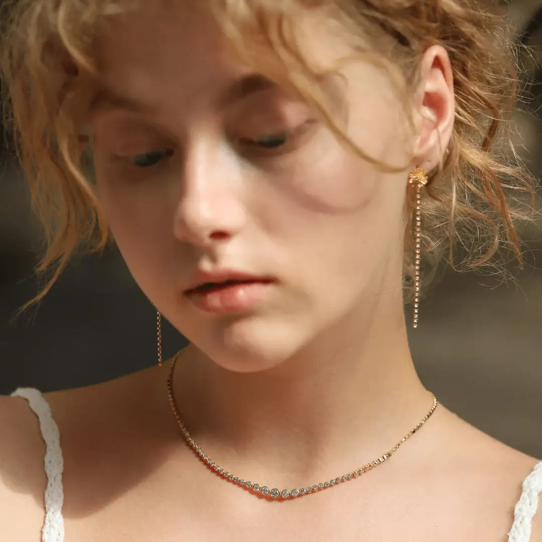 Bezel Set CZ Graduated Tennis Necklace: Gold