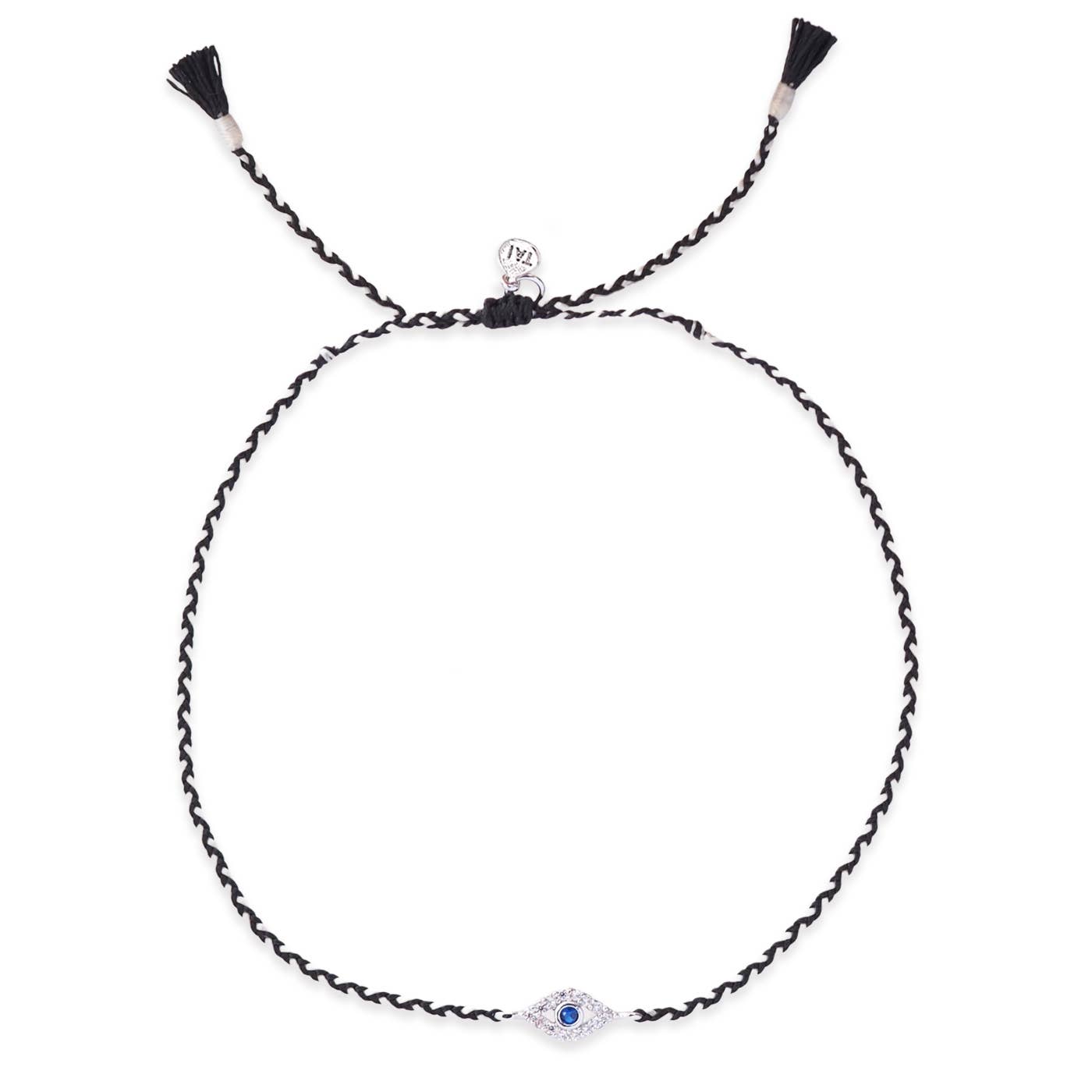 Our Evil Eye Carded Bracelet by Tai Jewelry is a stylish addition to your accessory collection. This charm/dangle bracelet is inspired by Tai's roots in Bangkok and her journey through California, reflecting high-quality fashion jewelry with fine jewelry finishing and details. The piece showcases the brand's commitment to handcrafted jewelry and community support. Enhance your outfit with this unique bracelet, available worldwide in boutiques, catalogs, and major retailers.