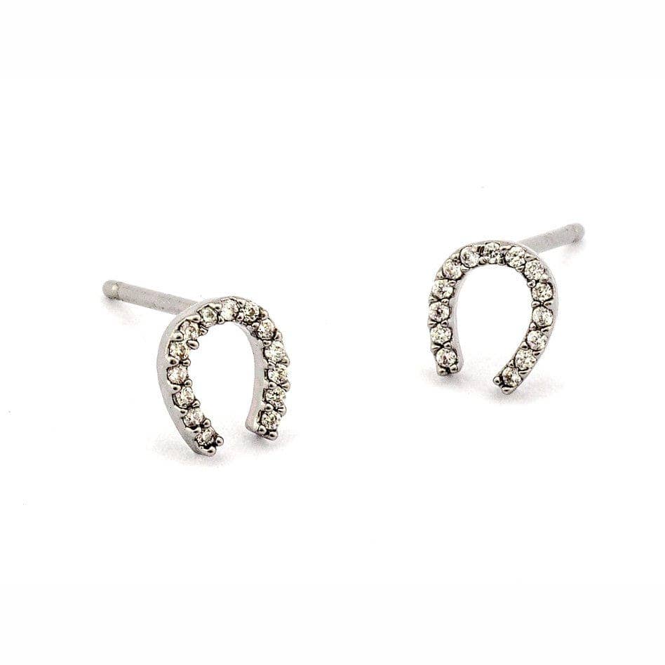 Pave Mini Horseshoe Studs: Silver
