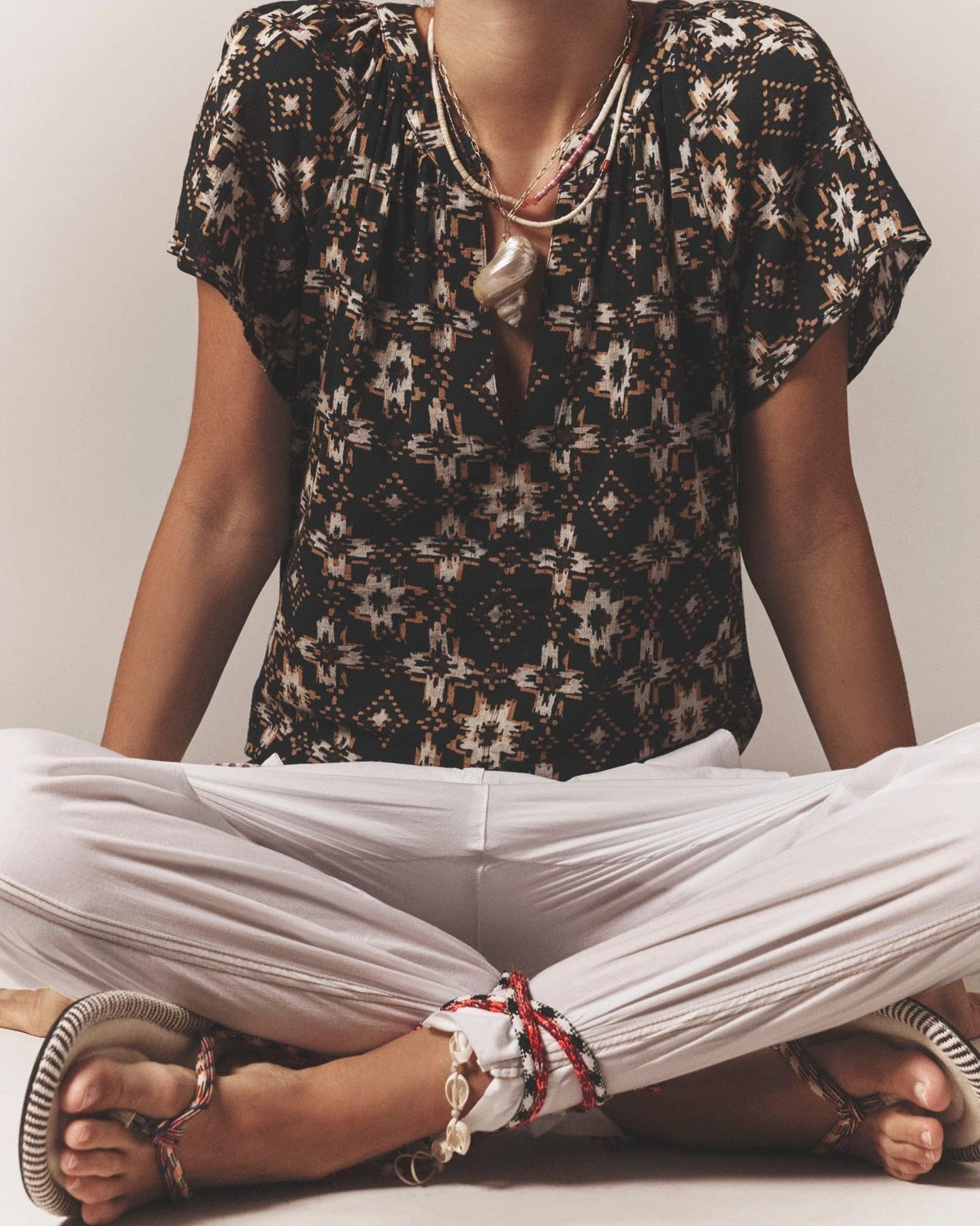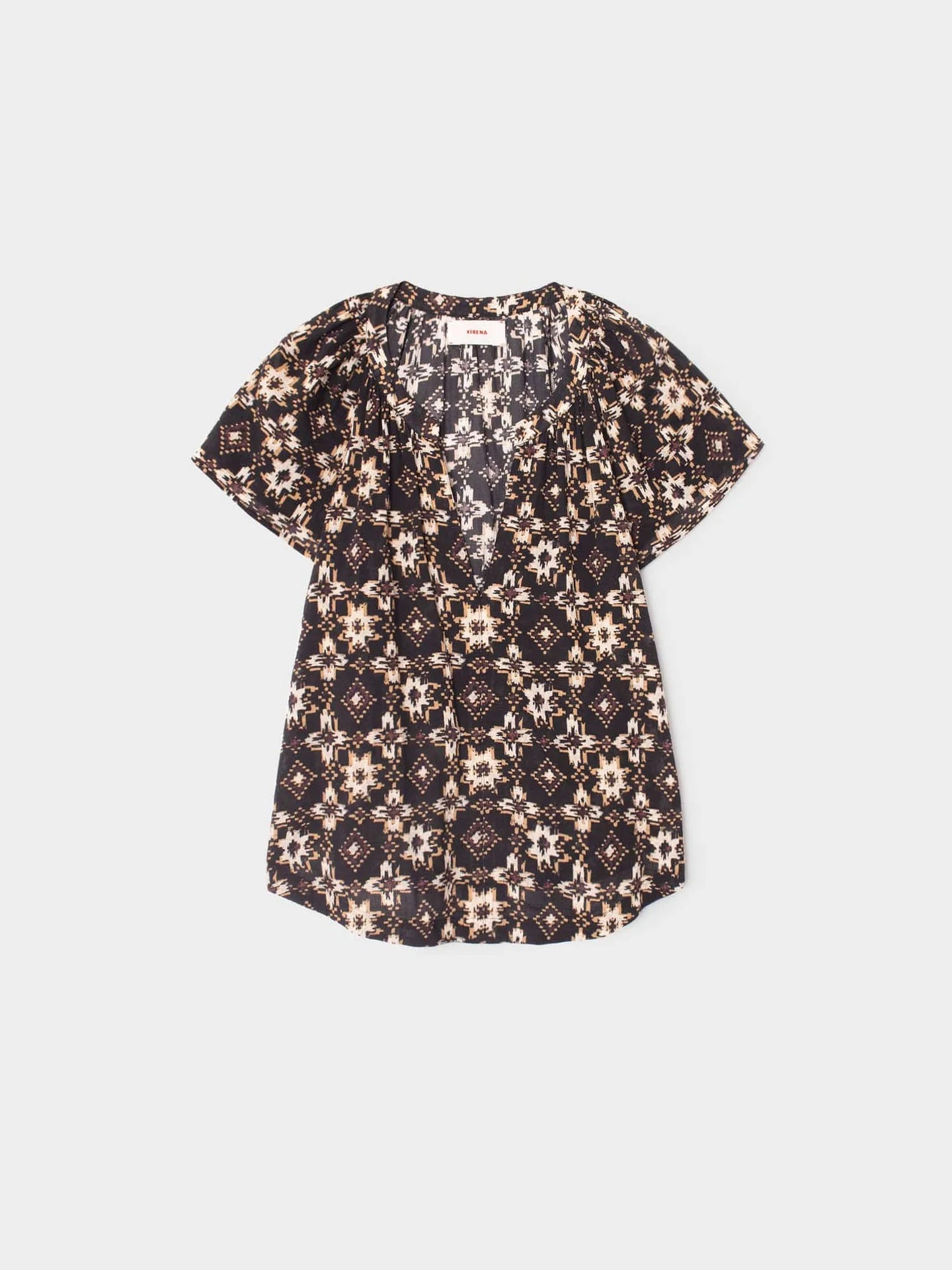 Pretty in Print. Jana is new this season in our vibrant cotton gauze print. This easy popover top features a split V-neck and flutter sleeves.