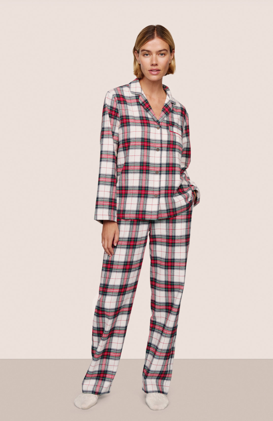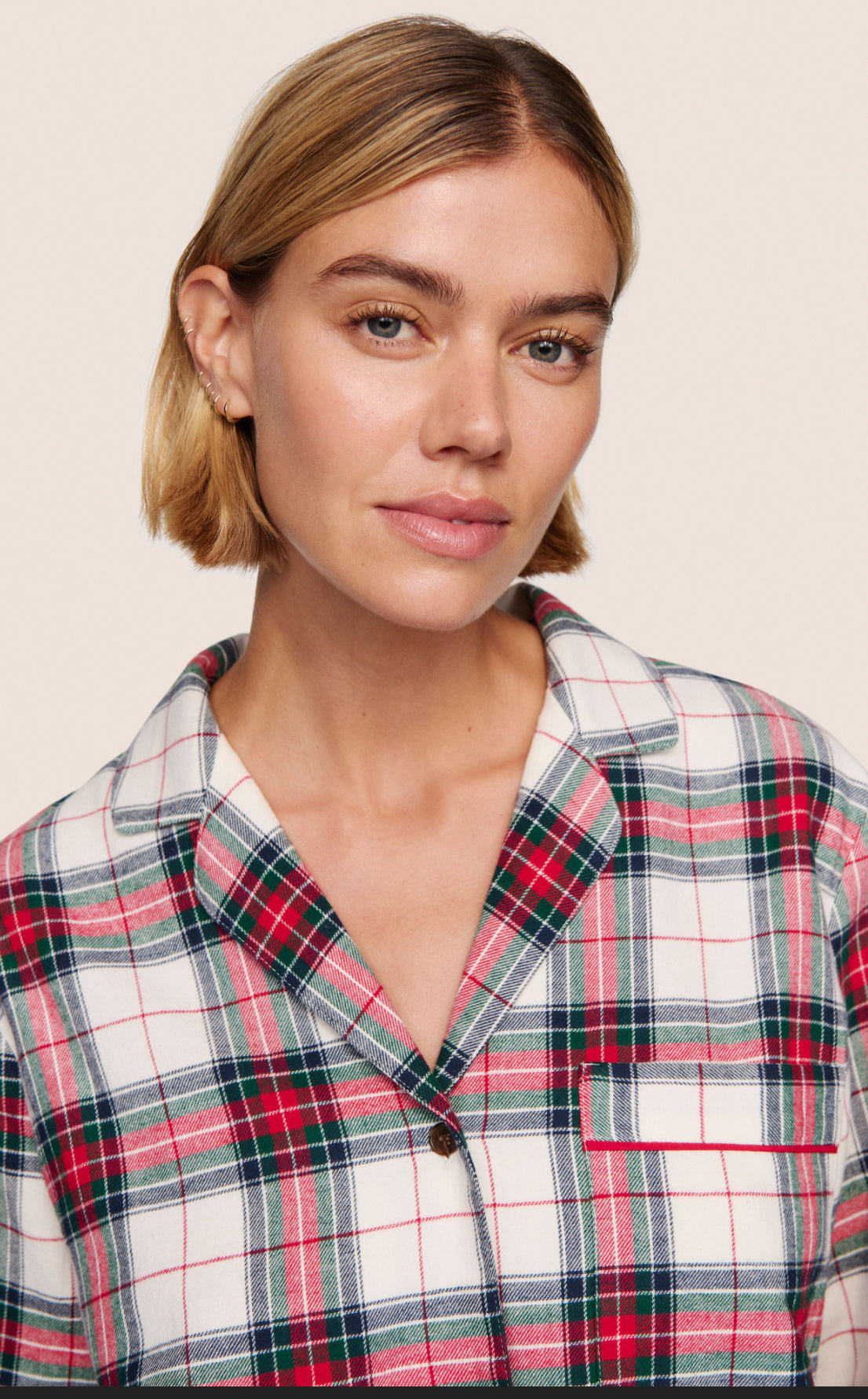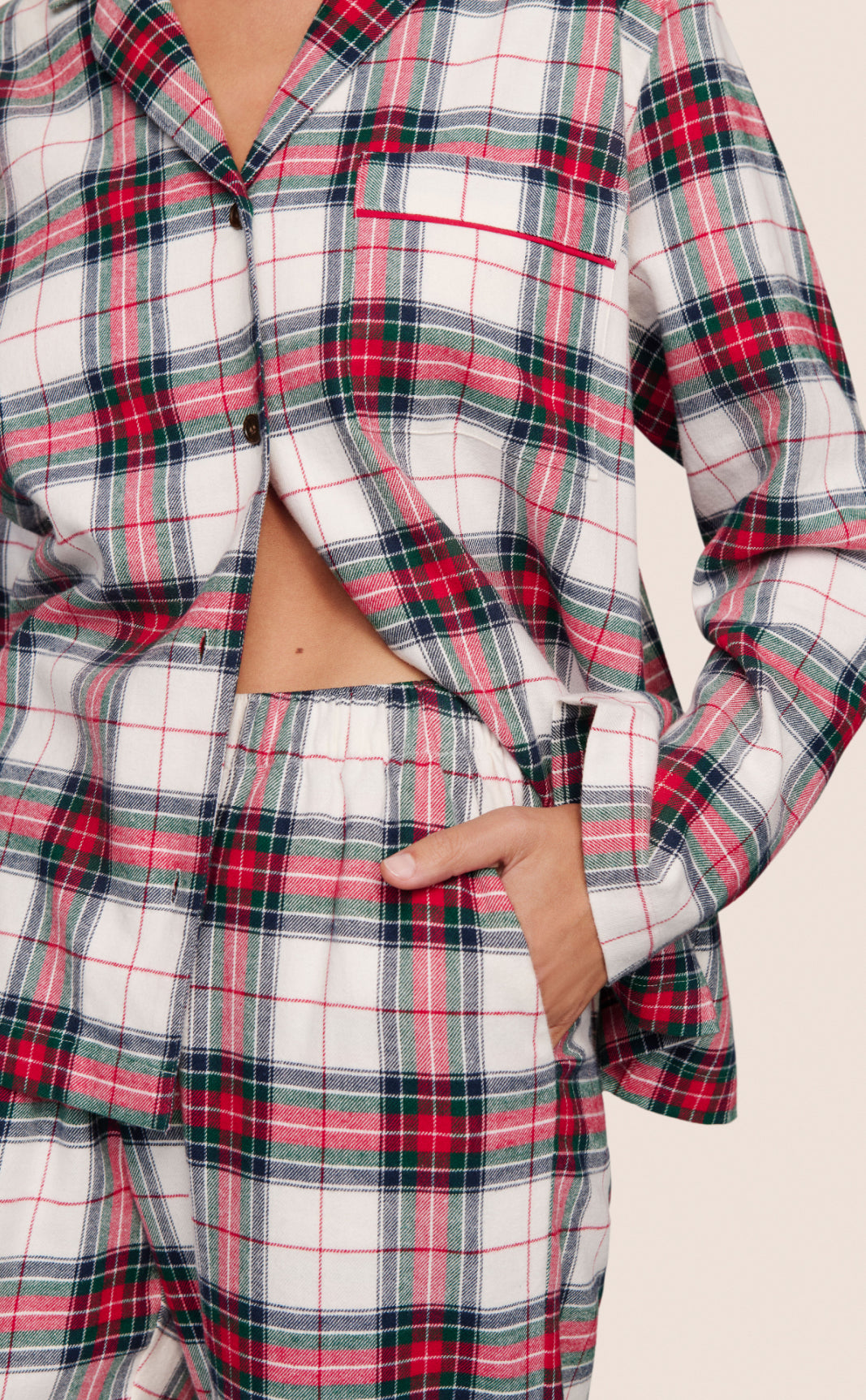 Flannel Long PJ Set Tartan Plaid Ivory Holly