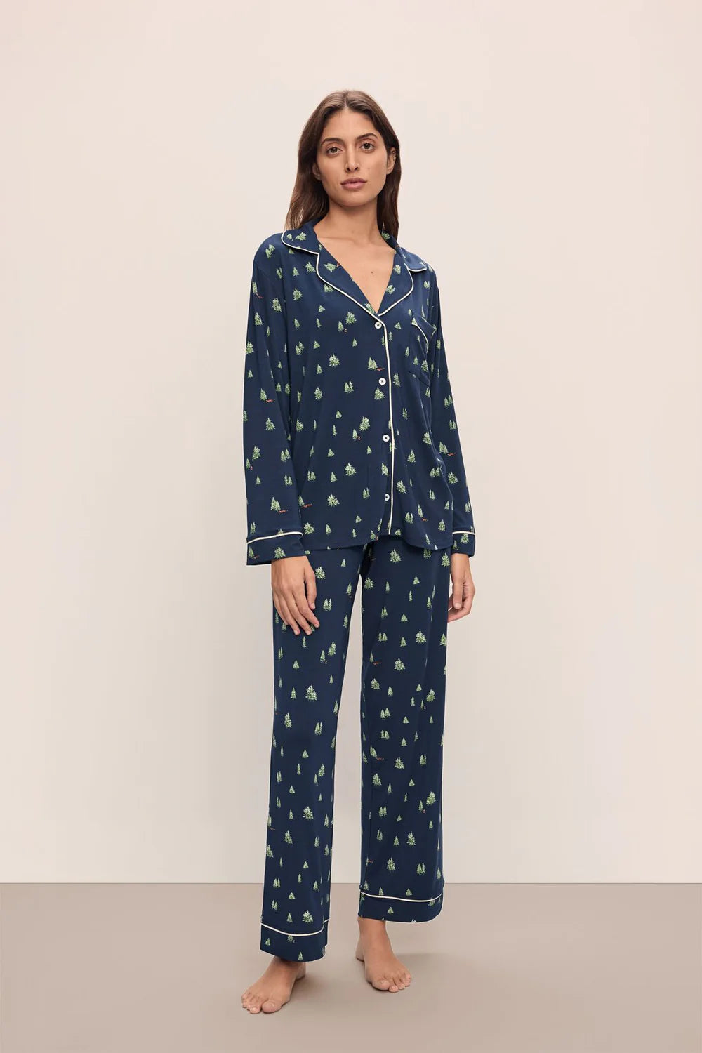 The PJ that started it all. Made from TENCEL™ Modal fibers and a touch of elastane, this buttery soft fabric is verified by OEKO-TEX® Standard 100, meaning it’s dyed with safe and non-toxic dyes. This relaxed long sleeve set features contrast piping, a button-front top with a notch collar and functional pocket, and a low-rise straight leg pant with a thin elastic waistband. Pairs well with our everyday lingerie and blissful ZZZ’s.   Color: Alpine Skier Ivory/Forest Green • 95% TENCEL™ Modal, 5% Spandex• Relaxed long sleeve and pant set• Button front top with notch collar and functional pocket• Low-rise...