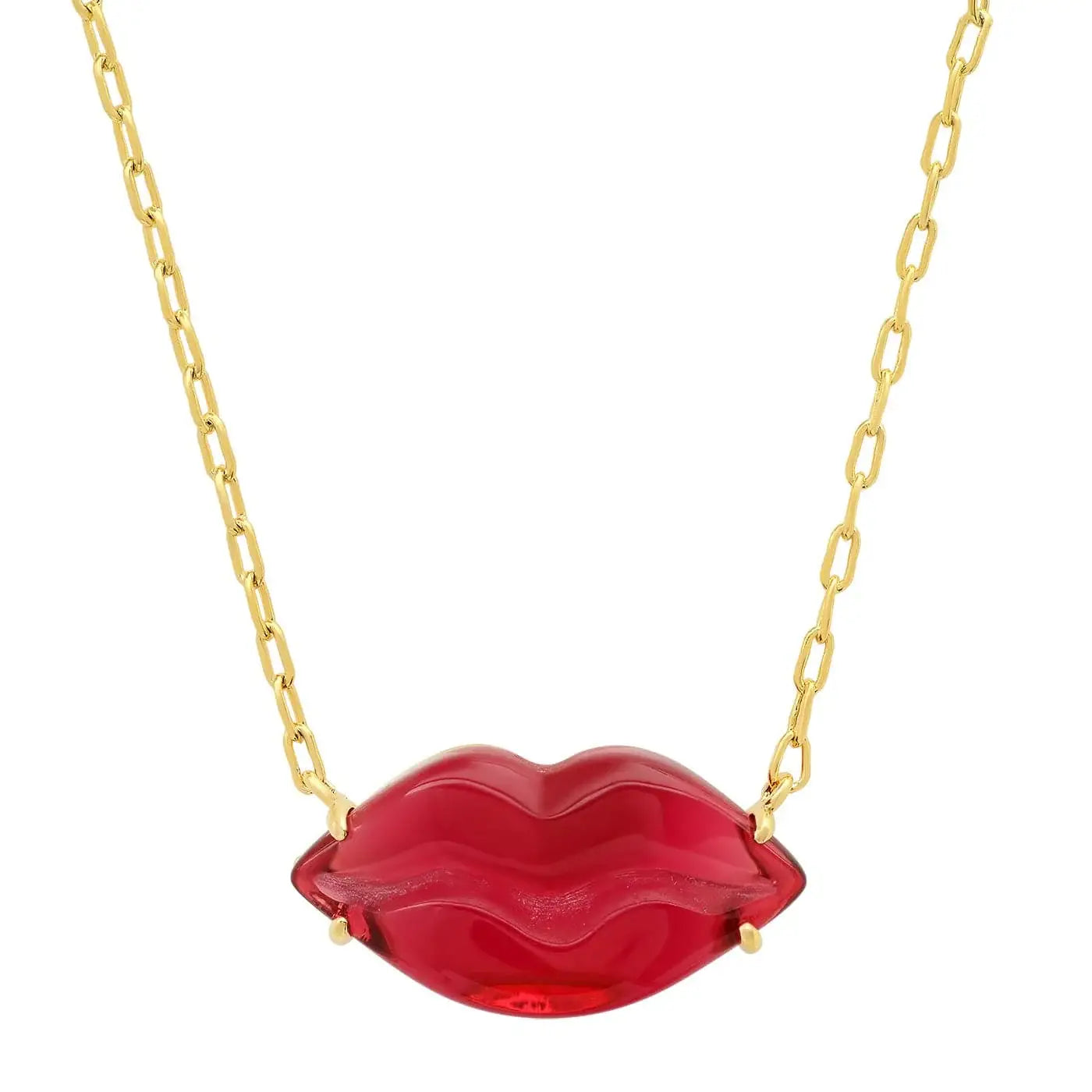 From Tai Jewelry, we bring you our Gold Necklace with Red Lip Pendant. Born and raised in Bangkok, Tai Jewelry combines fine jewelry finishing with high-quality fashion. This necklace, with its unique red lip pendant, is perfect for those who appreciate handcrafted pieces. It adds an artistic touch to any outfit. Celebrate the art of jewelry with this unique piece from Tai Jewelry's extensive collection.