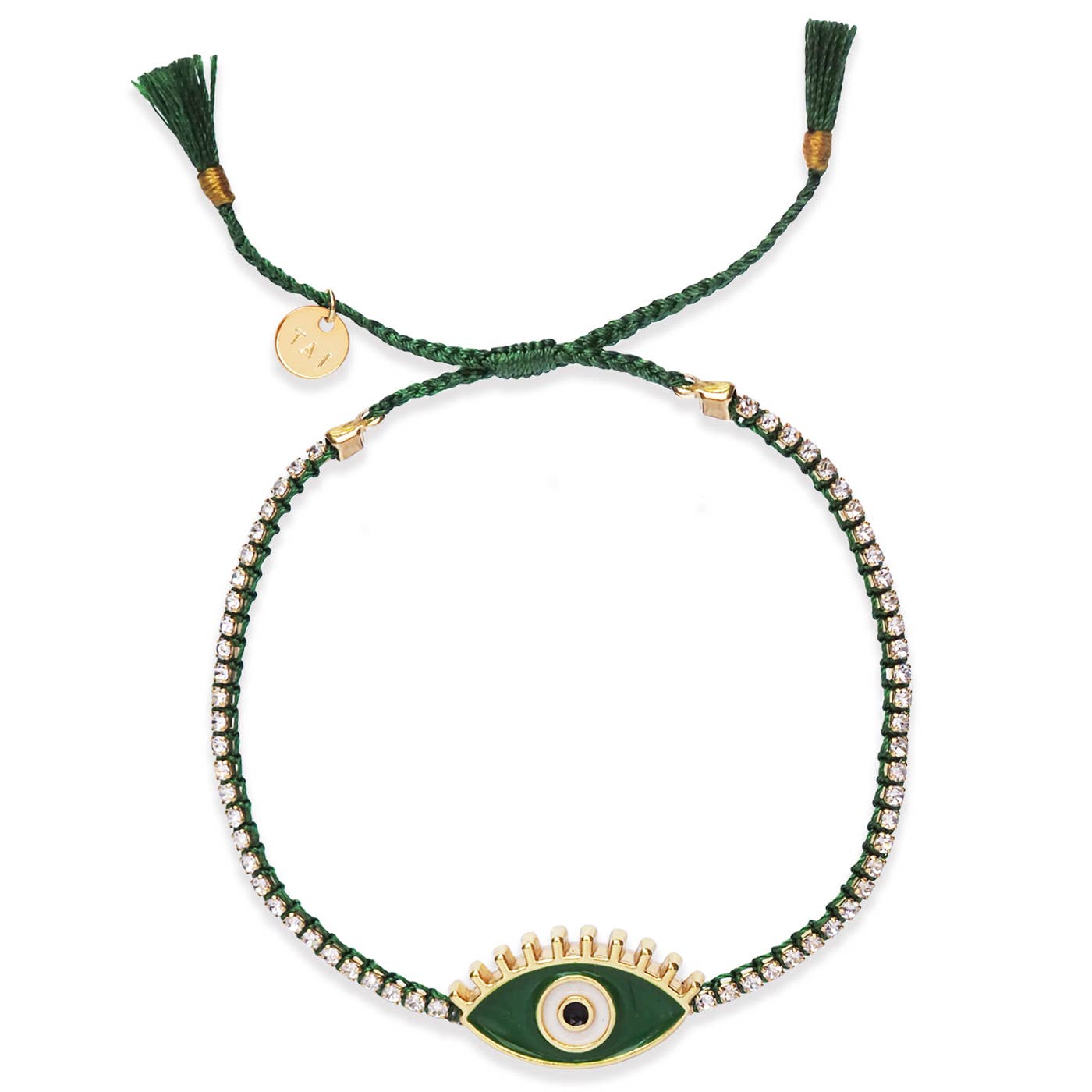 Discover the Handmade CZ Tennis Bracelet With Tear Eye from Tai Jewelry. Born from an artistic upbringing in Bangkok, this bracelet is a testament to Tai's dedication to high-quality fashion jewelry. Each piece is meticulously handcrafted, reflecting fine jewelry finishing and details that set Tai Jewelry apart. This unique tennis bracelet beautifully bridges the gap between high fashion and fine jewelry.