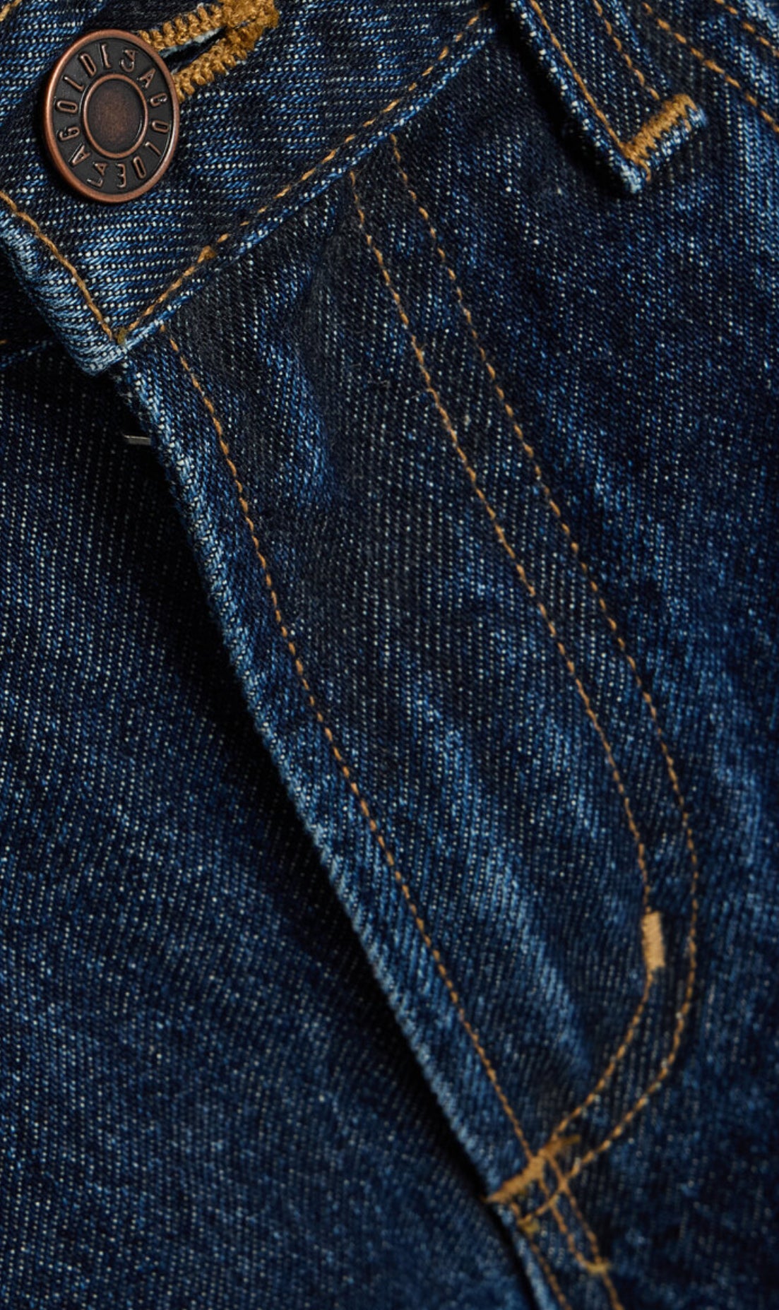 Feels Like: Rigid, non stretch cotton denim with a soft hand for all day wearability