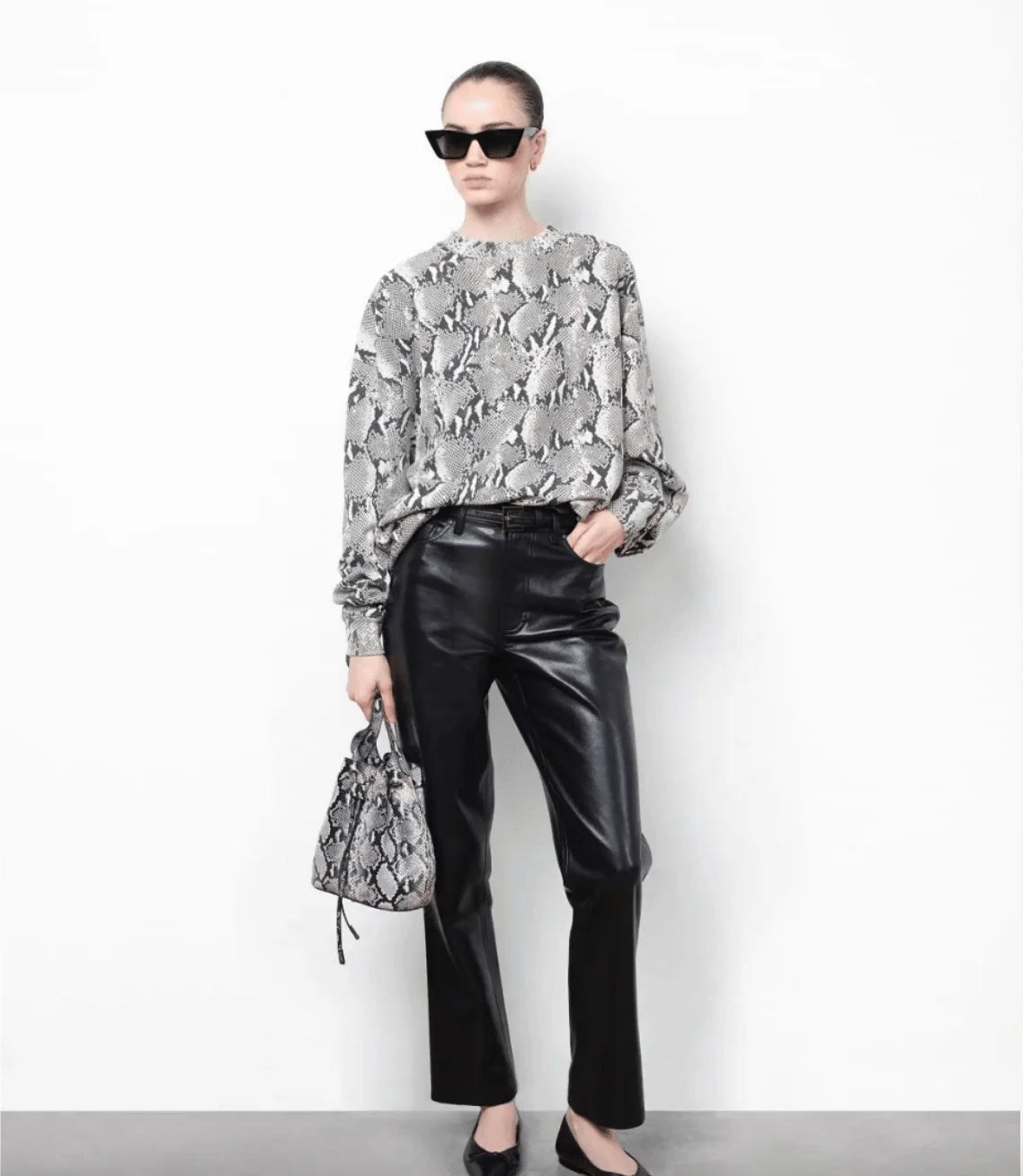 An oversized crewneck pullover made from midweight 100% cotton fleece that`s brushed at the inside in an all-over seasonal python print. - Cotton fleece - Relaxed, oversized fit - Ribbed cuffs and hem - Relaxed bottom band - Grey ANINE BING monogram embroidered at the wearer`s left chest Please note: This item is individually handcrafted and will vary in color or appearance.