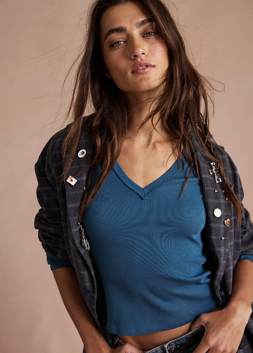 Easy, fitted, and flattering, this long sleeve from our We The Free collection features an elongated V-neckline, soft ribbed cotton fabrication, and a slim silhouette, making it the perfect staple piece.