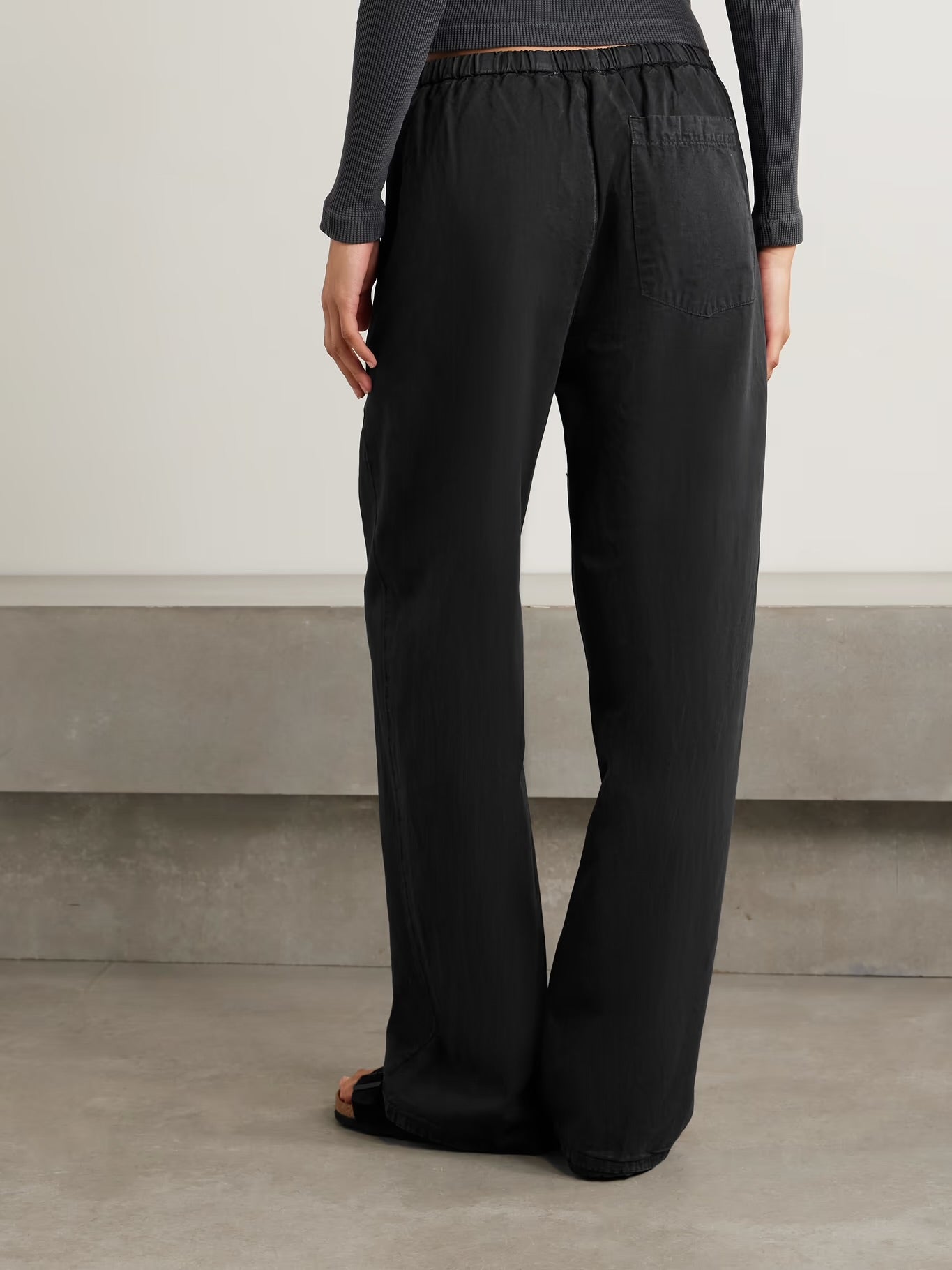 The ‘Aurora’ pant is made from a soft, airy Italian twill for natural drape and breathability. With a high-rise drawstring waist and wide leg, the silhouette feels effortlessly relaxed. The ‘Washed Black’ shade offers a gently faded finish for a casual, worn-in look. Pair with tonal separates for a minimal, everyday uniform.