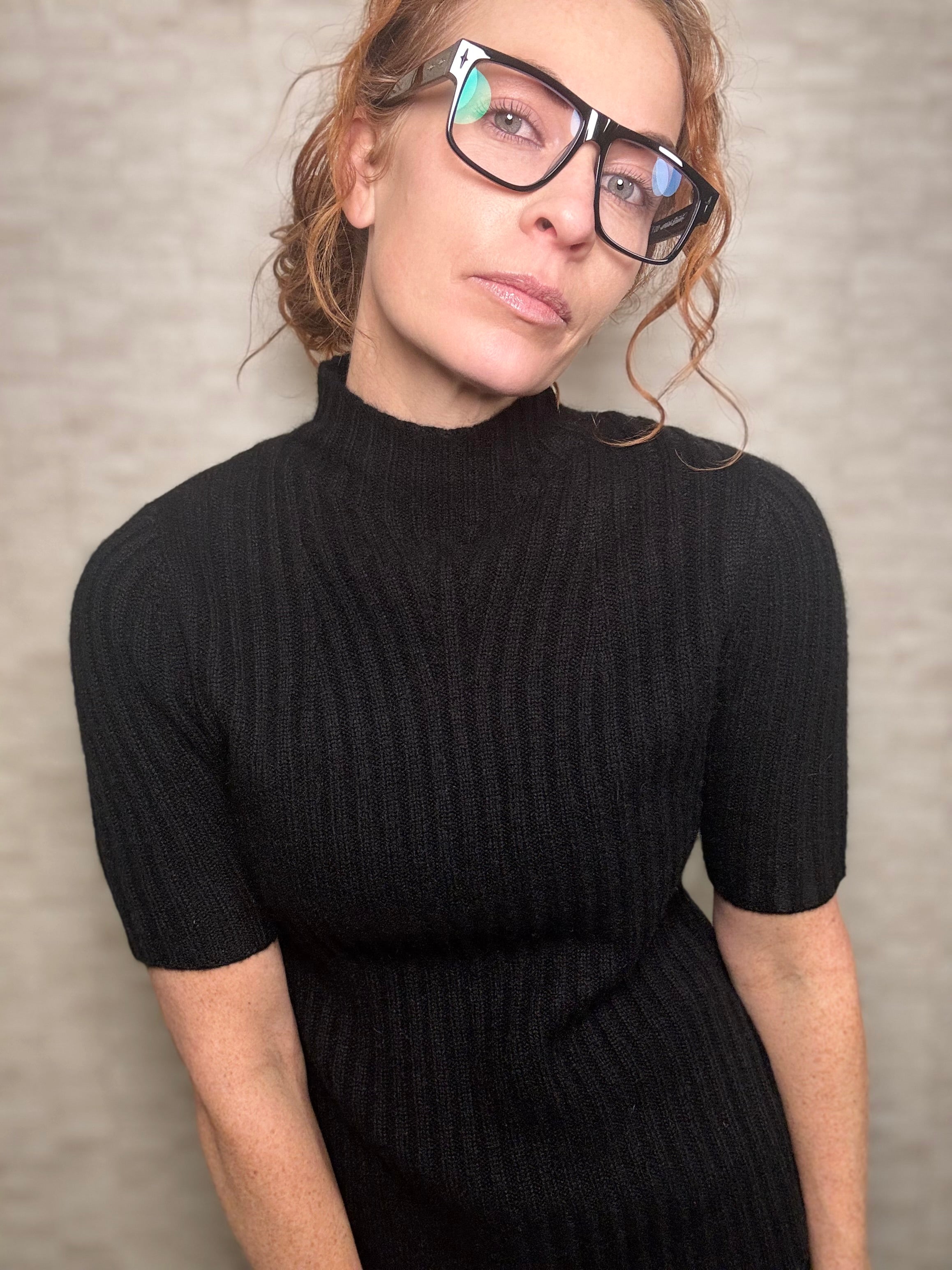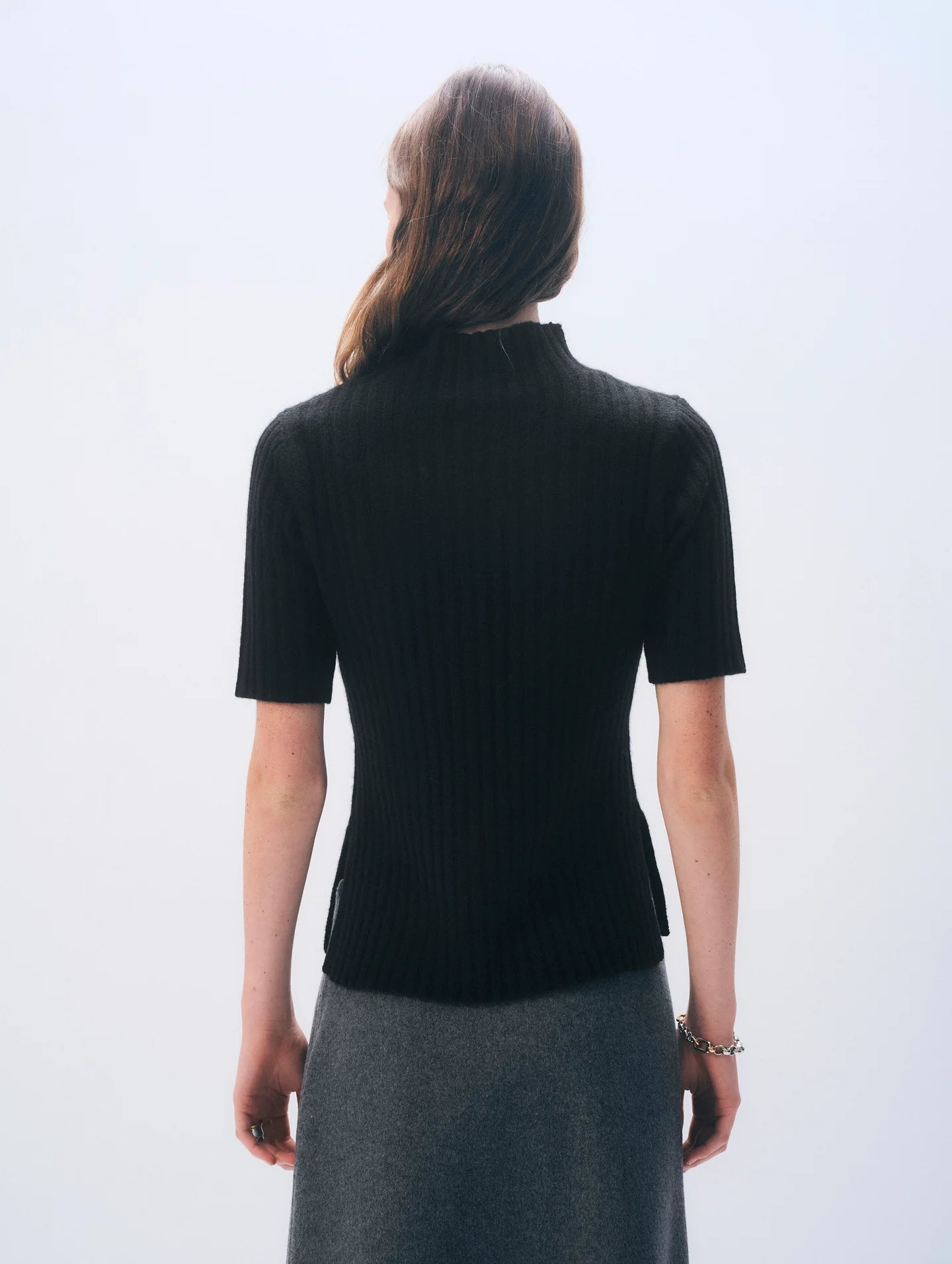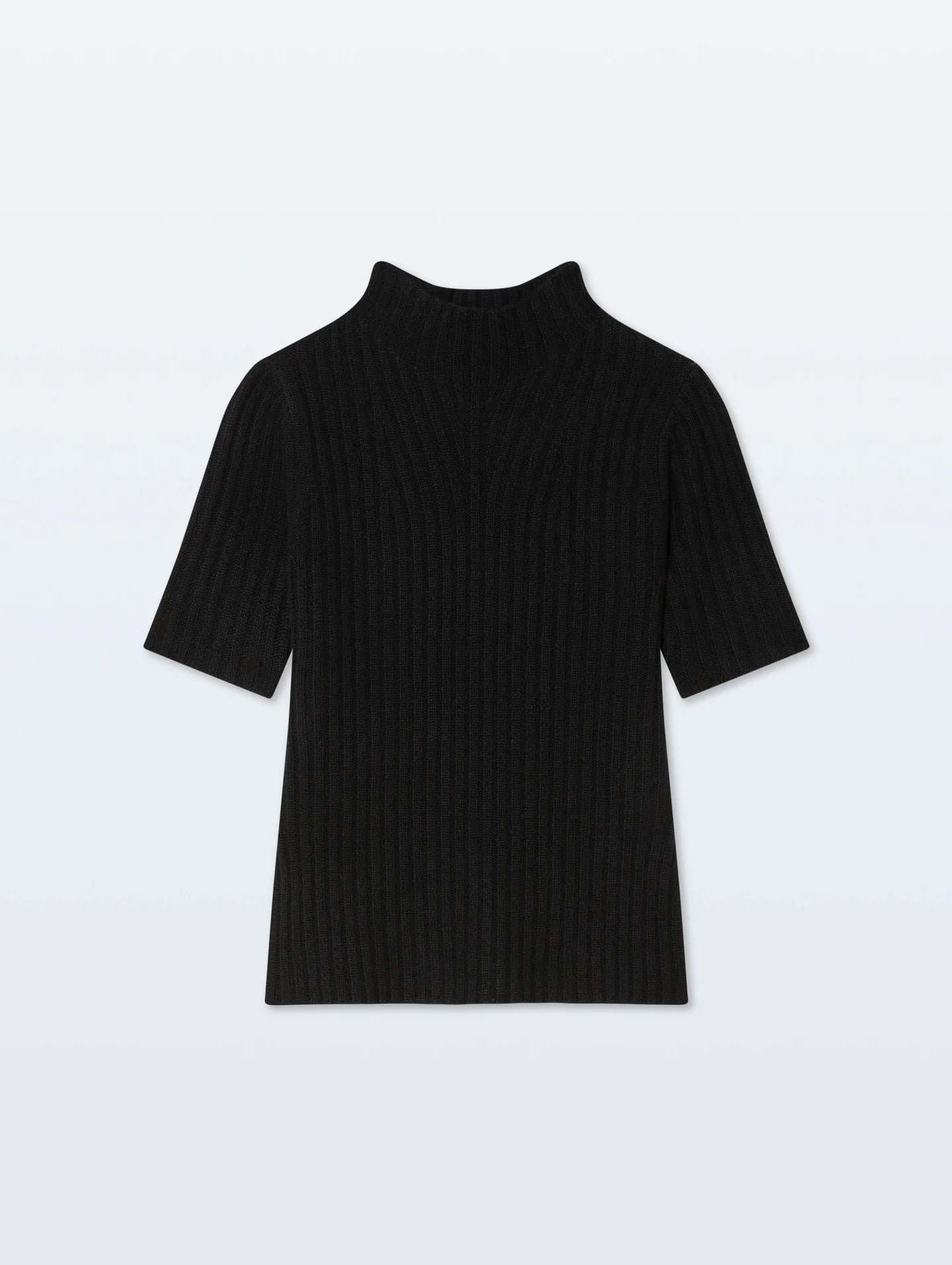 An understated essential. Spun from pure cashmere in a sleek, wide-rib knit, this slim mockneck features elbow-length sleeves and a subtle side slit—the perfect balance of comfort and class. 100% Cashmere.