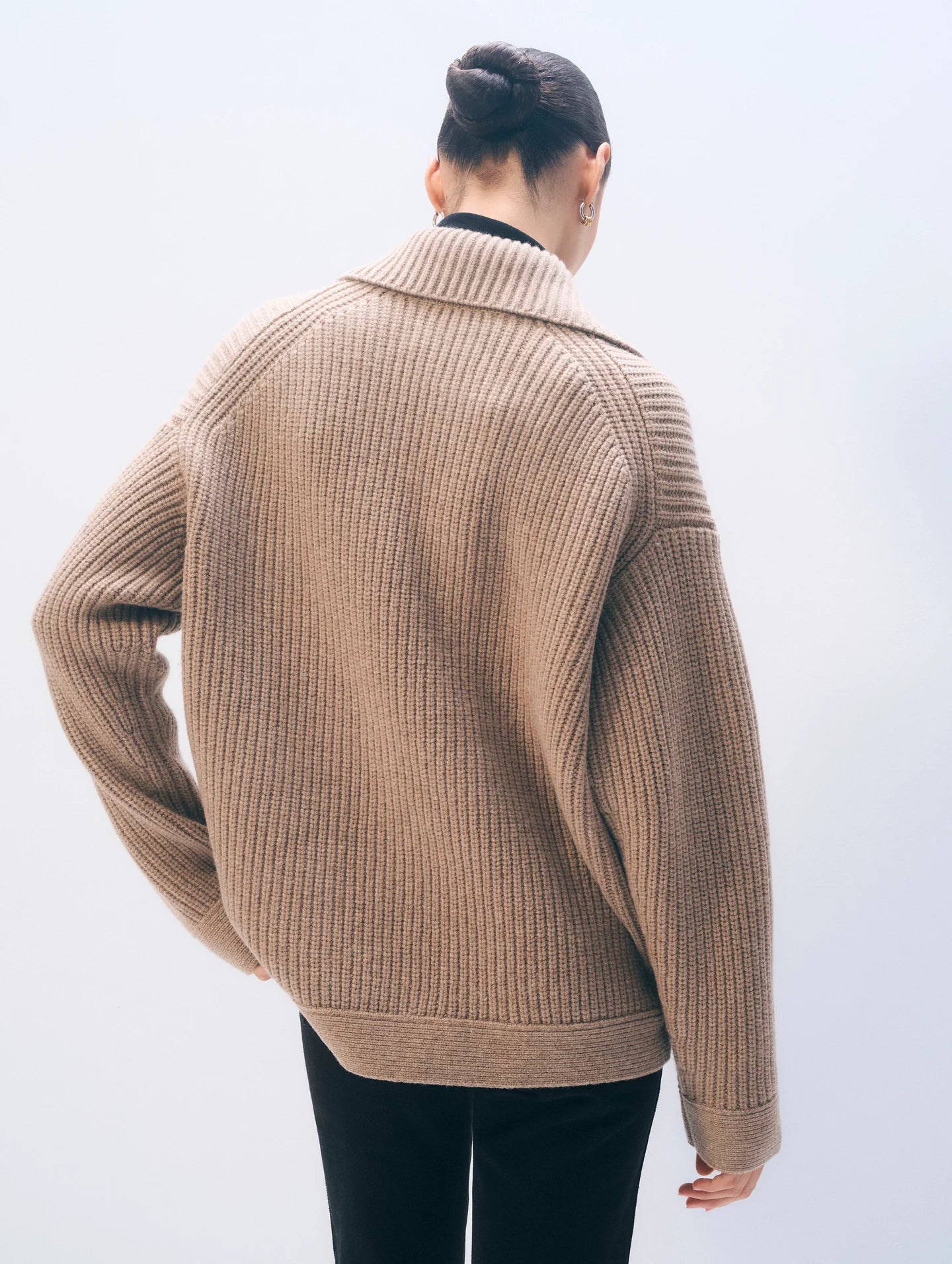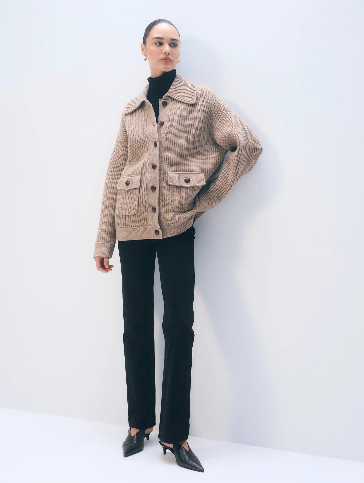 A luxury jacket spun from 100% Scottish merino wool and softened with our proprietary wash. Designed in a fisherman rib with structured details and leather-coated buttons, it balances durability with refinement.