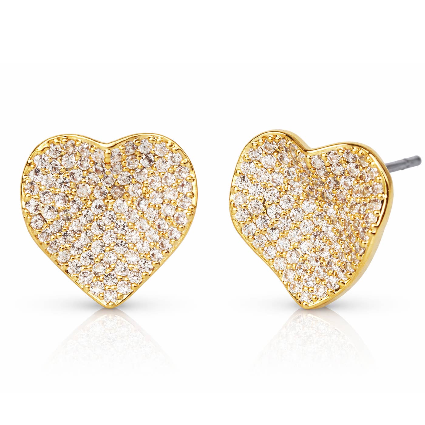 Medium Pave Heart Studs: Gold