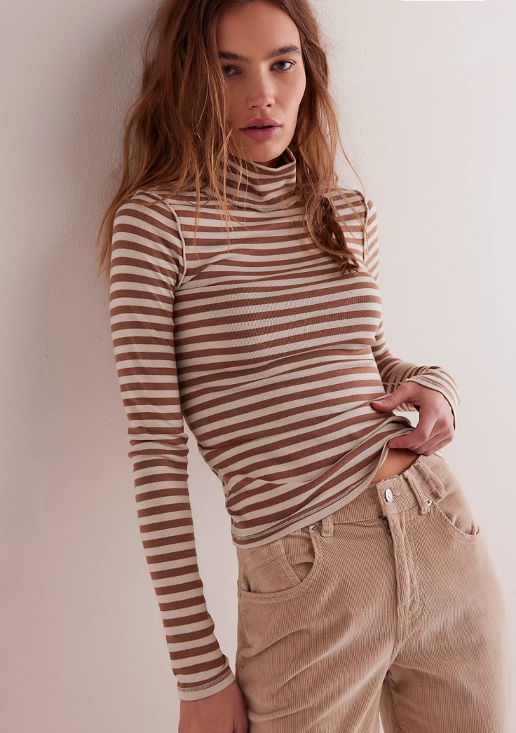 The most essential layering piece from our We The Free collection, featured in a striped fabrication and slim-fitting silhouette with a turtle-neckline and long-sleeves.