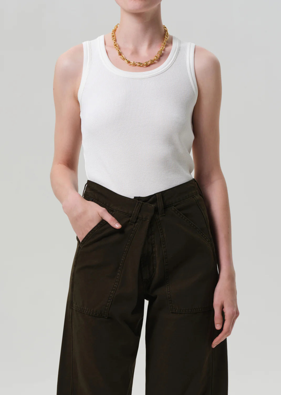 The Inez Tank is a refined take on a classic thermal, crafted from midweight cotton with a soft waffle texture throughout. Designed for a close fit with a clean neckline and minimal finish, it offers easy layering and everyday comfort. Pair it with relaxed denim or tailored trousers for effortless contrast.