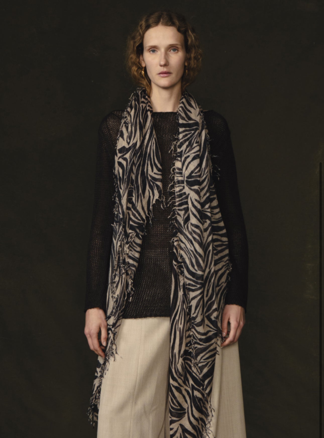 Zebra Cashmere Silk Blend Scarf Mahogany