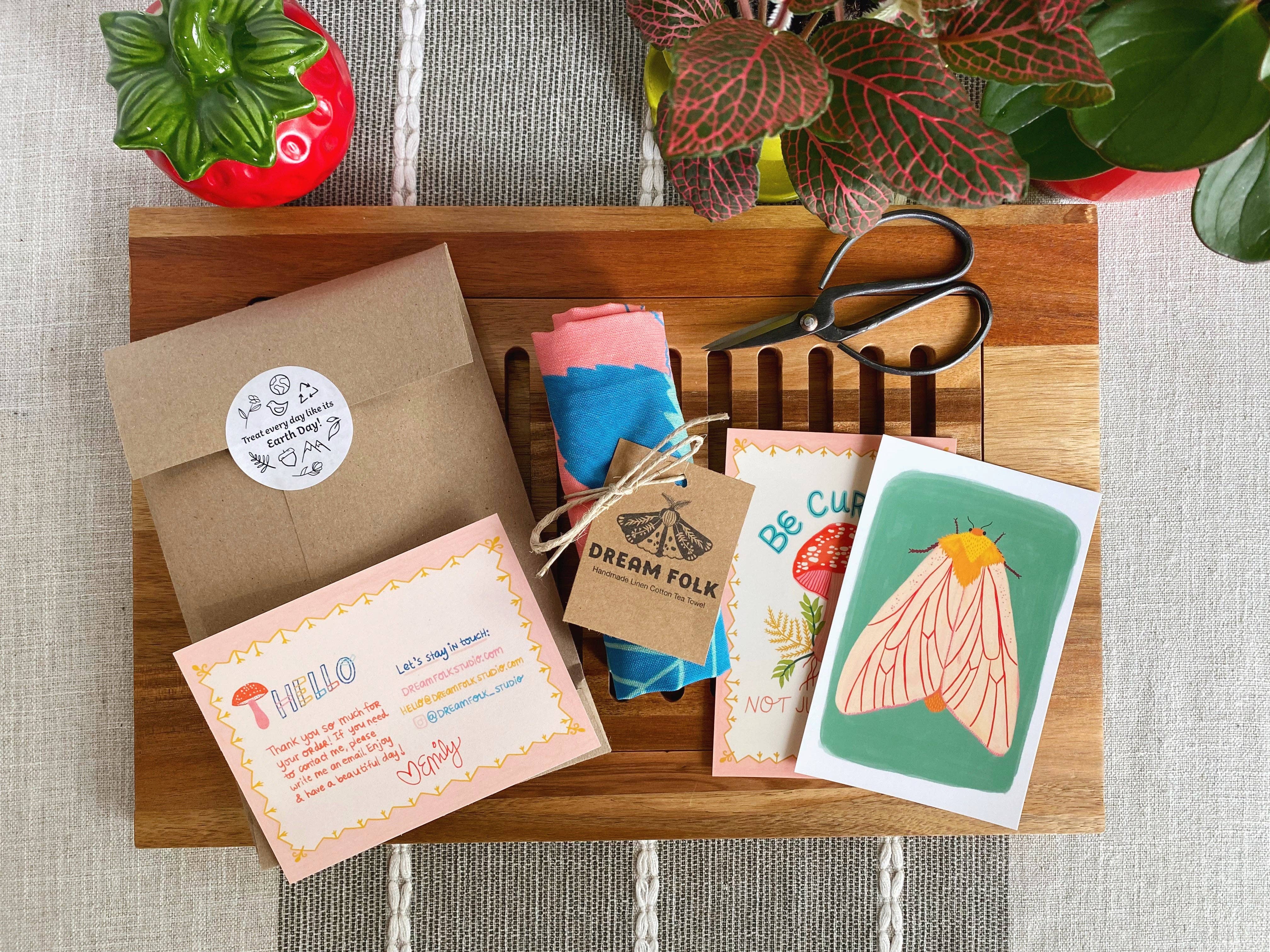 These tea towels are a beautiful cotton linen blend and are machine washable! The fabric is printed through an eco-friendly process, using water-based inks. I sew these tea towels myself in my home studio and if I need extra help, I ask my mom :) I love these tea towels! The fabric is soft, yet durable. They get softer with each washing. They're great for cleaning up messes, giving as gifts, covering your fresh baked bread, displaying on your oven door handle. They can also be hung as a wall hanging with a wooden poster hanger (see last image). Each towel has...