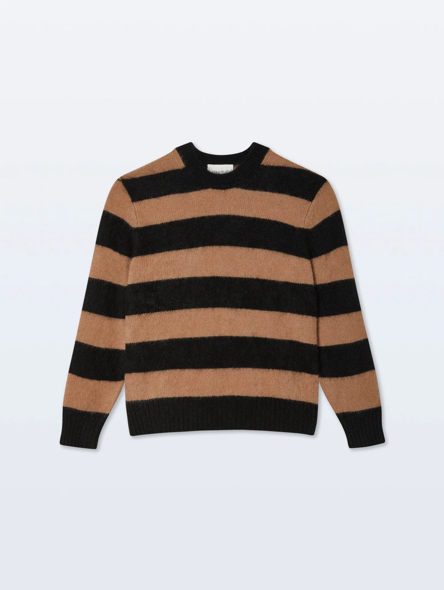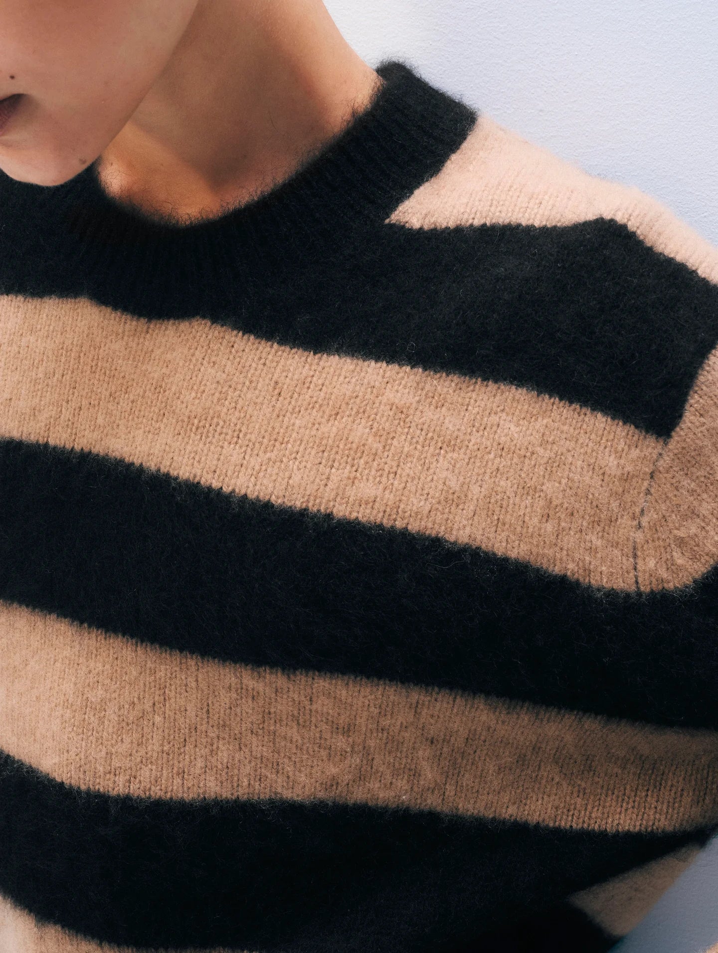 This season's hero sweater. A relaxed crewneck crafted from 100% brushed cashmere for a luxuriously soft feel, made to live in all season long. Make a statement with bold, wide stripes or keep it timeless in the solid shade.