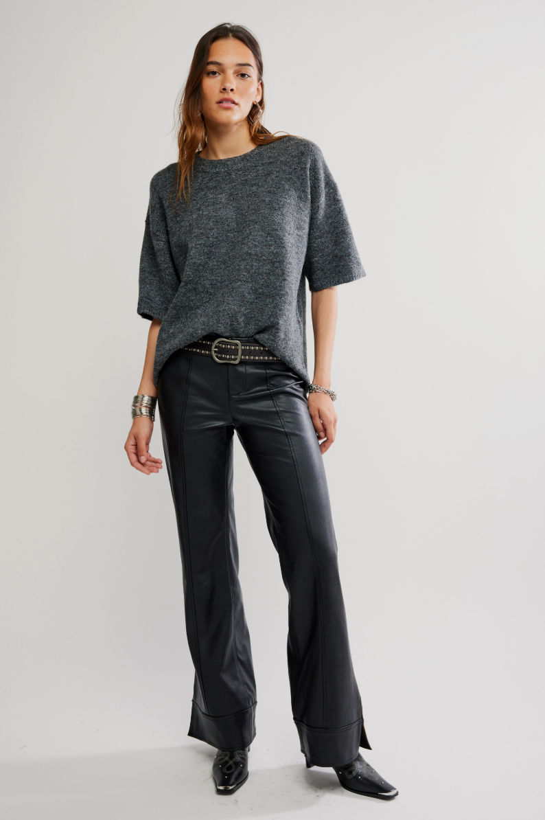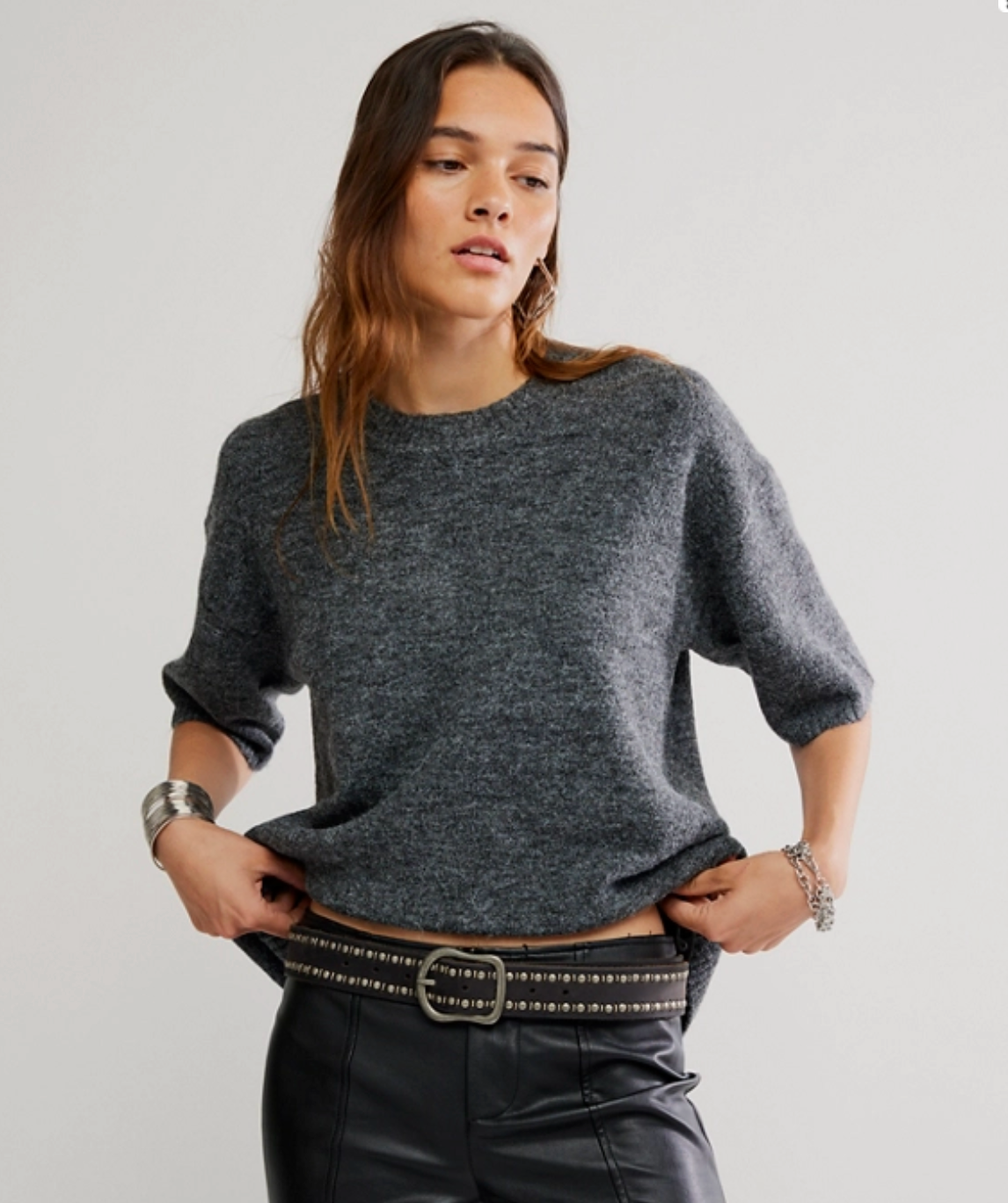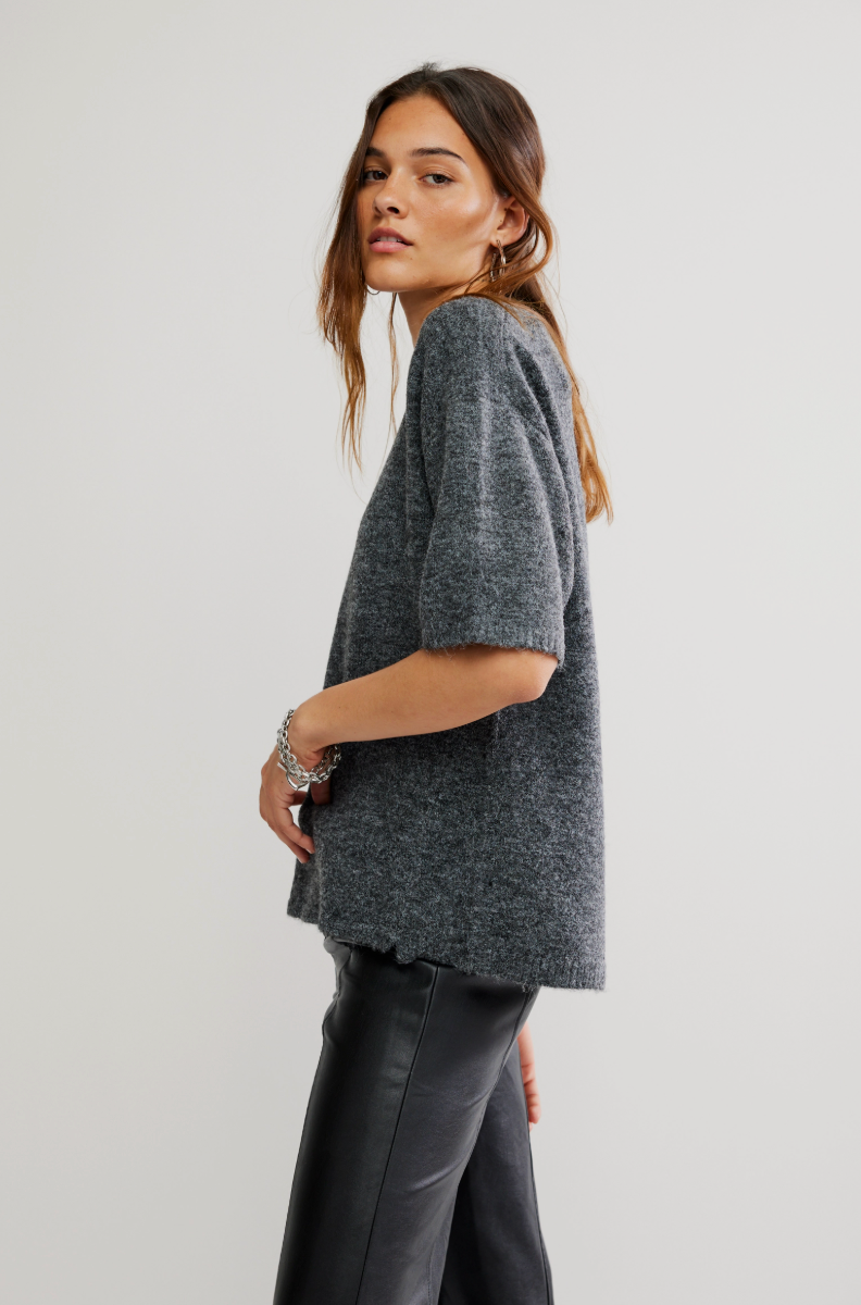 Cozy meets staple with this sweater tee, featured in the perfect oversized style for endless laidback styling. Crew neckline Ribbed trim Short drop-shoulder sleeves
